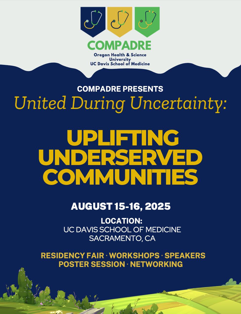 The COMPADRE (California Oregon Medical Partnership to Address Disparities in Rural Education and Health) 2025 Conference invites you to showcase your expertise with students and faculty of UC Davis, OHSU, and 30+ residency programs in the Northern CA and Southern OR region while gaining new insights about innovative ways to meet the needs of these regions’ underserved populations.